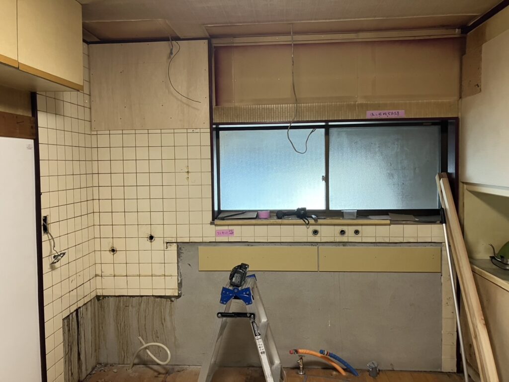 施工途中:既存キッチンの解体から新設へ