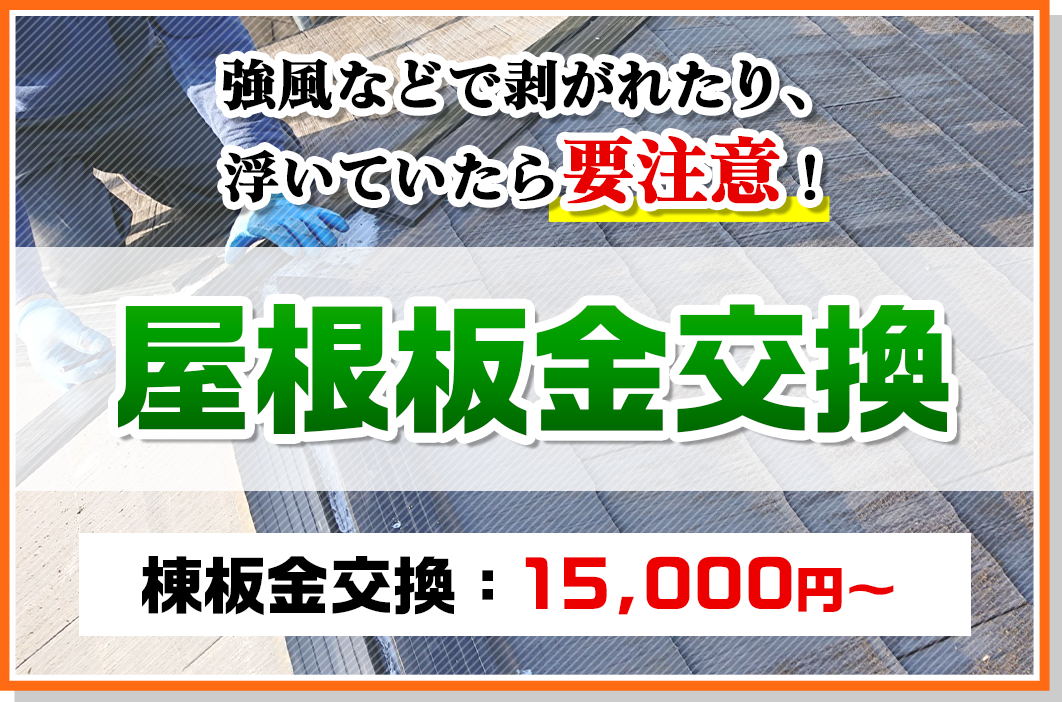 強風などで棟板金が剥がれてきたら、早めのメンテナンスが必要です。