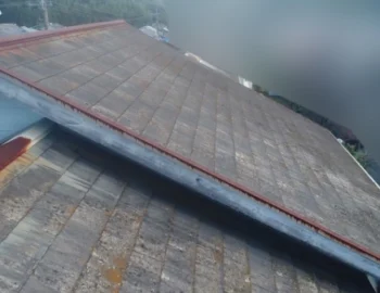築20年ほどのスレート屋根で、ご相談内容の通り経年劣化による黒ずみ・コケ汚れが顕著でした。